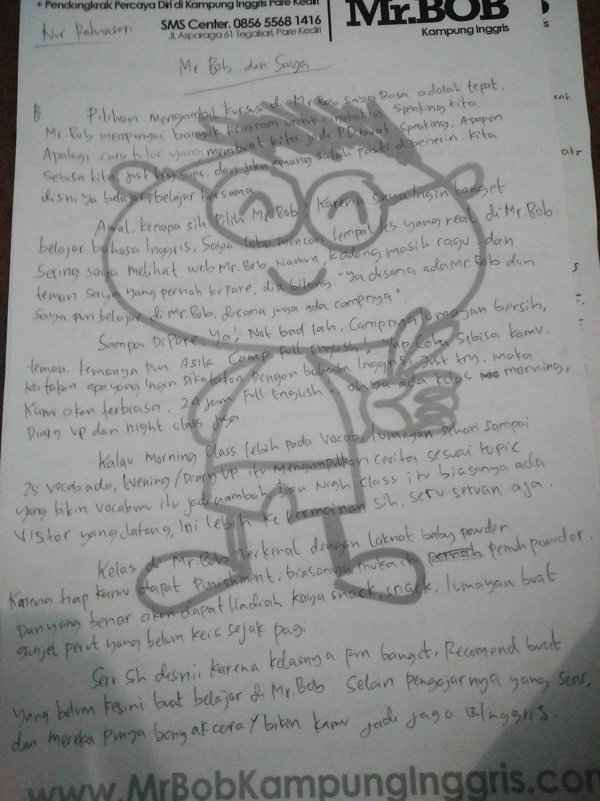 Sering saya melihat web Mr.BOB Kampung Inggris namun, kadang ragu dan teman saya yang pernah ke Pare, dia bilang “ ya di sana ada Mr.BOB Kampung Inggris dan saya pun belajar di Mr.BOB Kampung Inggris, di sana kelas dan camp nya SERU”.